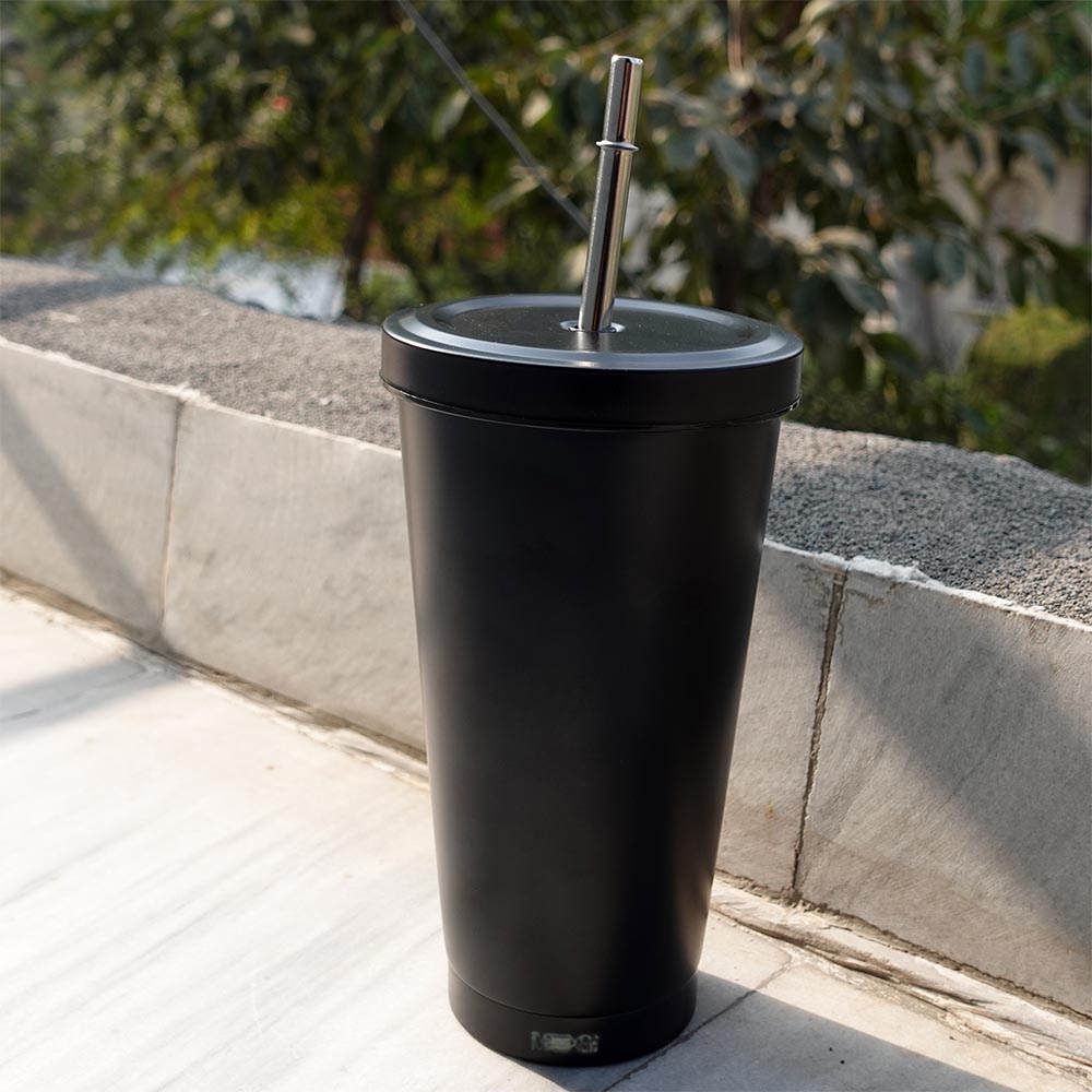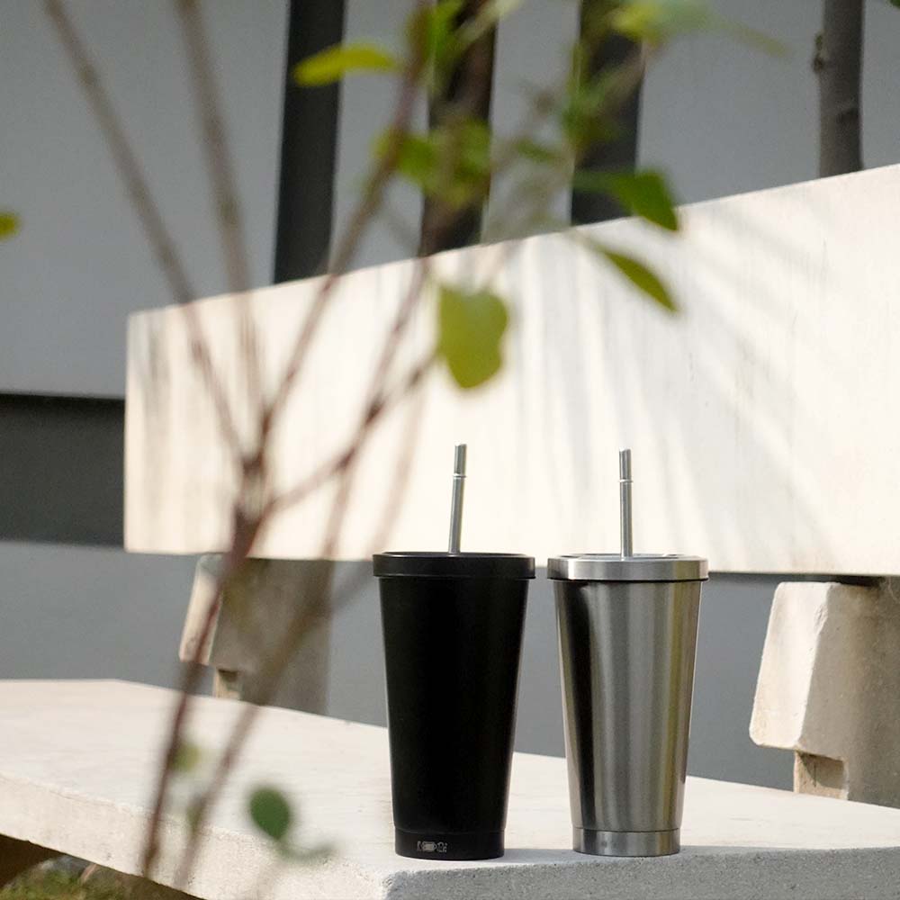 Stainless Steel Travel Mug With Lid & Steel Straw | 500ml